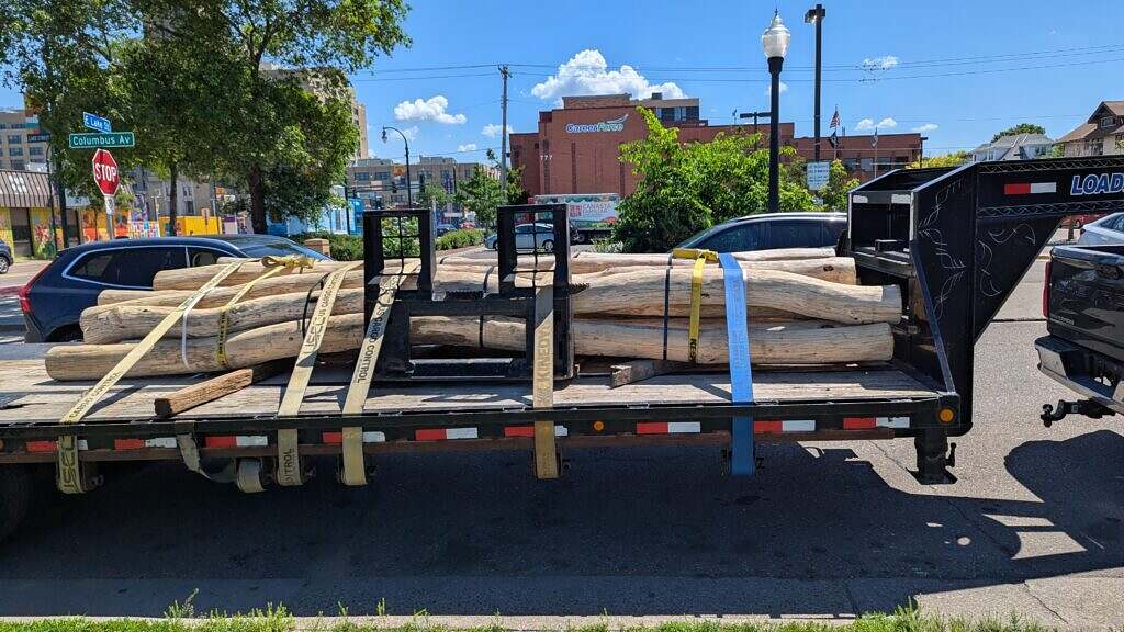 Black locust poles arrive! Black locust trees are known as pest trees on farms. Thankfully, Midwest Black Locust out of Viroqua, WI, saw an opportunity to introduce them as a building material.